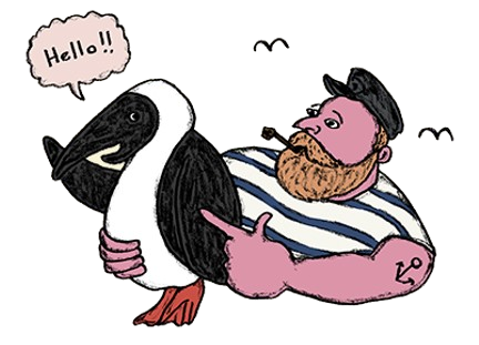 I know i look like a penguin, but i'm actually a Booby that can fly and dive into the sea. I'm officially known as a Booby Bird. There's a real photo of me on display at the Omotesando store, so be sure to check it out!