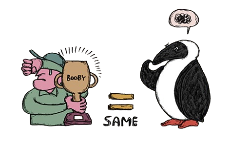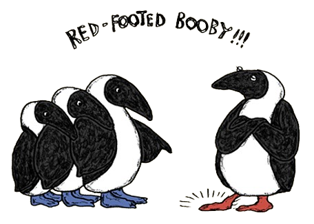 In English, "booby" means "not very smart or last place." That's right! "Booby" is the same word that appears in the term "booby prize," an award given in recognition of a last place finish.